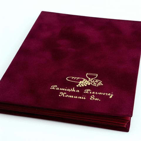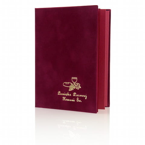 Wyjątkowa uroczystość, jaką jest Komunia Święta, zasługuje na oprawę najwyższej klasy i dlatego właśnie albumy z kolekcji EXCLUSIVE powstają z najlepszych dostępnych materiałów. Okładka została wykonana z wykwintnego floku o delikatnej fakturze aksamitu. Efektu dopełnia stylowy, złoto tłoczony napis.