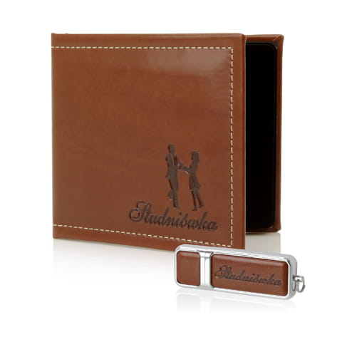 ETUI STUDNIÓWKOWE NA PENDRIVE IPE/TE SKÓRZANE BRĄZOWE Z NAPISEM STUDNIÓWKA